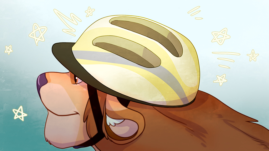 На спортсмене велошлем, и спокоен он совсем: