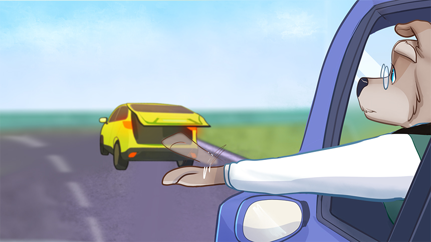 Эй, смотри! Водитель-друг в воздухе рисует круг –