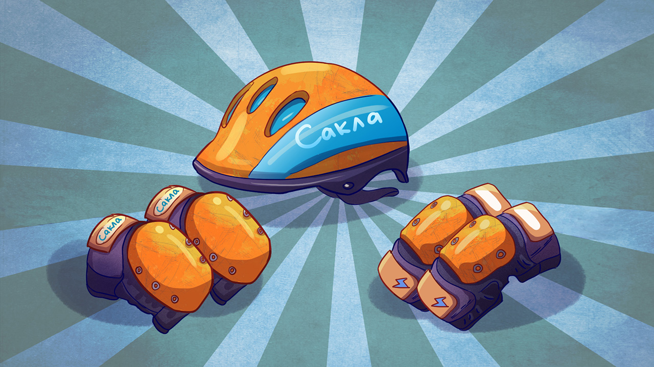 Налокотник, наколенник, шлем перед посадкой.