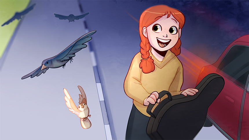 На урок Алсу идёт, скрипку старую несёт.